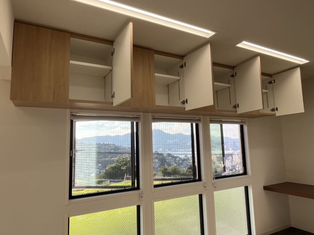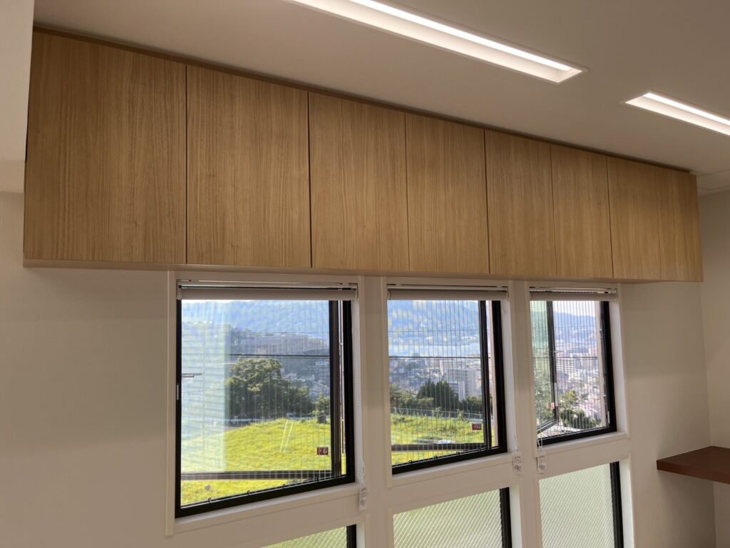 | 依頼内容 | OAフロア 窓際カウンター 吊戸棚 |